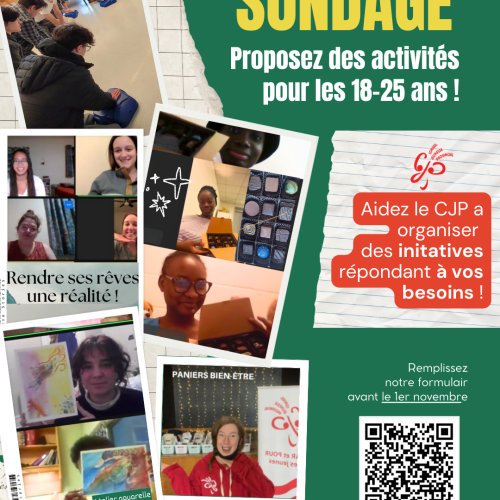 Le CJP lance un sondage afin de recueillir des suggestions d’activités et d’initiatives destinées aux 18-25 ans dans le cadre de sa programmation 2025-2026.